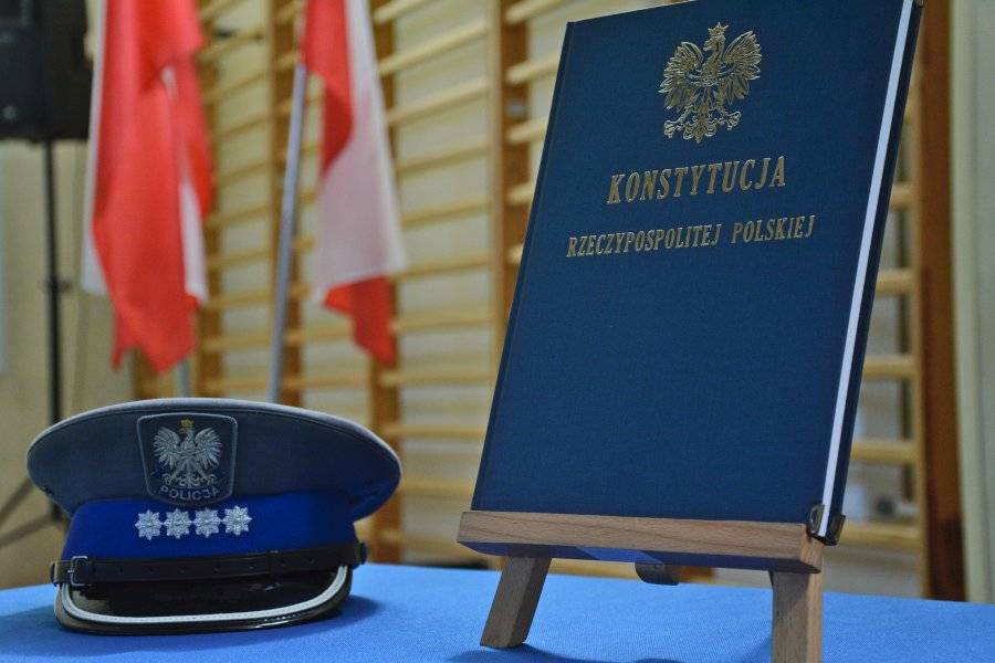 "Ja, obywatel Rzeczypospolitej Polskiej, świadom podejmowanych obowiązków policjanta, ślubuję: służyć wiernie Narodowi, chronić ustanowiony Konstytucją Rzeczypospolitej Polskiej porządek prawny, strzec bezpieczeństwa Państwa i jego obywateli, nawet z narażeniem życia. Wykonując powierzone mi zadania, ślubuję pilnie przestrzegać prawa, dochować wierności konstytucyjnym organom Rzeczypospolitej Polskiej, przestrzegać dyscypliny służbowej oraz wykonywać rozkazy i polecenia przełożonych. Ślubuję strzec tajemnic związanych ze służbą, honoru, godności i dobrego imienia służby oraz przestrzegać zasad etyki zawodowej."