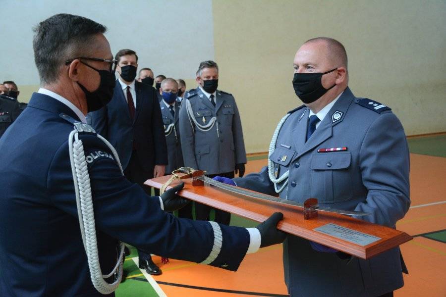 Kolejnym punktem uroczystości było wręczenie odznaczeń i medali oraz aktów mianowania na wyższe stopnie policyjne wyróżnionym funkcjonariuszom. Nim jednak to nastąpiło KWP w Łodzi pożegnał uroczyście mł. insp. Grzegorza Radzikowskiego byłego Komendanta Powiatowego Policji w Łowiczu, który otrzymał w podziękowaniu za wieloletnią służbę szablę.