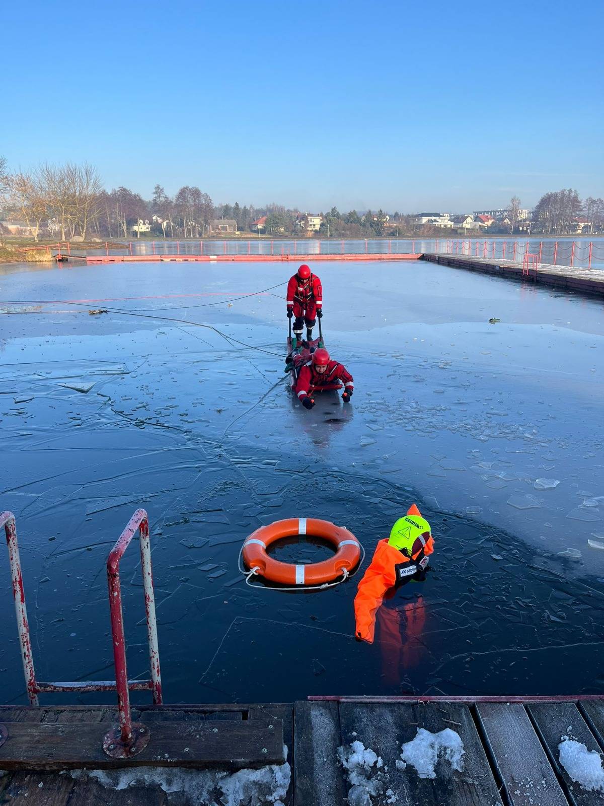 Przebywanie na zamarzniętej rzece, jeziorze czy zbiorniku zawsze stanowi ogromne zagrożenie, w związku z powyższym apelujemy o rozwagę i ostrożność podczas spacerów wokół akwenów oraz nie wchodzenie na taflę lodu. Z brzegu wydawać się może, że lód pokrywający wodę jest gruby i wytrzymały, a w rzeczywistości po zrobieniu kilku kroków może okazać, że jest cienki i słaby załamując się pod naporem ciężaru przebywających na nim ludzi.