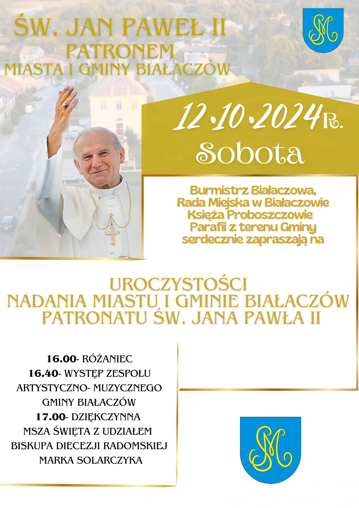 12 października w Kościele pw. św. Jana Chrzciciela w Białaczowie odbędzie się wyjątkowa uroczystość z okazji Nadania Miastu i Gminie Patronatu św. Jana Pawła II.