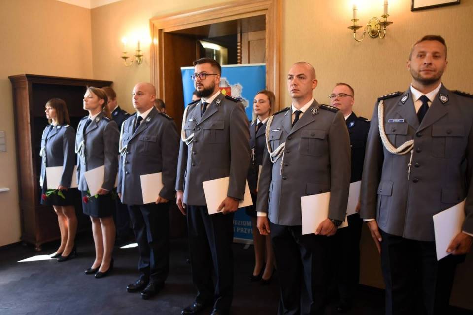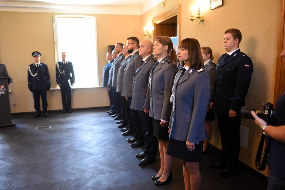 - Brązowa odznaka „Zasłużony Policjant" nadawana jest policjantowi w uznaniu jego szczególnych zasług i osiągnięć służbowych, którymi przyczynił się do ochrony bezpieczeństwa ludzi oraz utrzymania porządku publicznego. Następnie Panowie Komendanci wręczyli akty mianowania na wyższe stopnie policyjne - wyjaśnia młodszy aspirant Bartłomiej Kozłowski, rzecznik prasowy KPP Łask i dodaje: -W 2024 roku w Komendzie Powiatowej Policji w Łasku oraz Komisariacie Policji w Widawie nominacje na wyższy stopień służbowy otrzymało 29 policjantów. W korpusie oficerów starszych oraz młodszych akt nominacyjny odebrało dwóch policjantów, w korpusie aspirantów awanse odebrało 12 funkcjonariuszy, w korpusie podoficerów 8 policjantów, a w korpusie szeregowych akty mianowania odebrało 6 funkcjonariuszy.