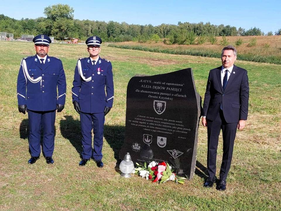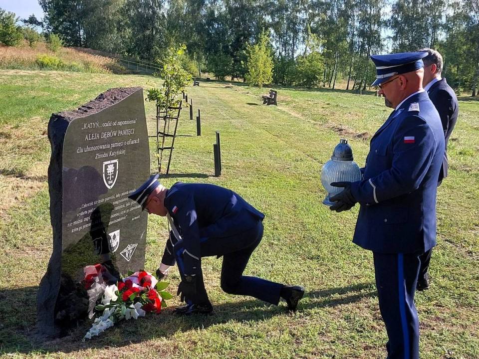 30 lipca policjanci z Komendy Powiatowej Policji w Łasku oficjalnie obchodzili swoje święto, które w kalendarzu przypada na 24 lipca. Chwilę przed rozpoczęciem oficjalnej części uroczystości Komendant Powiatowy Policji w Łasku – młodszy inspektor Grzegorz Sas wraz z swoim pierwszym zastępcą – podinspektorem Marcinem Kucnerem oraz Prezesem Stowarzyszenia "Rodzina Policyjna 1939 r." w Łodzi - Jarosławem Olbrychowskim oddali hołd ofiarom Zbrodni Katyńskiej – przedwojennym policjantom zamordowanym wiosną 1940 roku na terenie ZSRR. Panowie Komendanci złożyli kwiaty przy pamiątkowej tablicy, znajdującej się w „Alei Dębów" na ulicy Kilińskiego w Łasku.