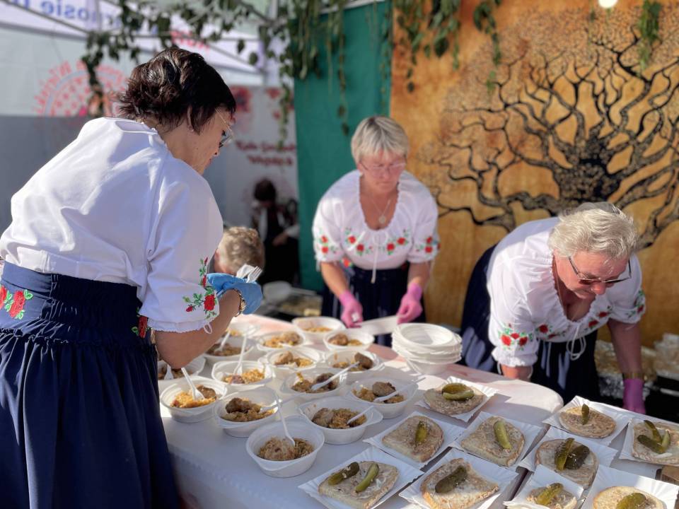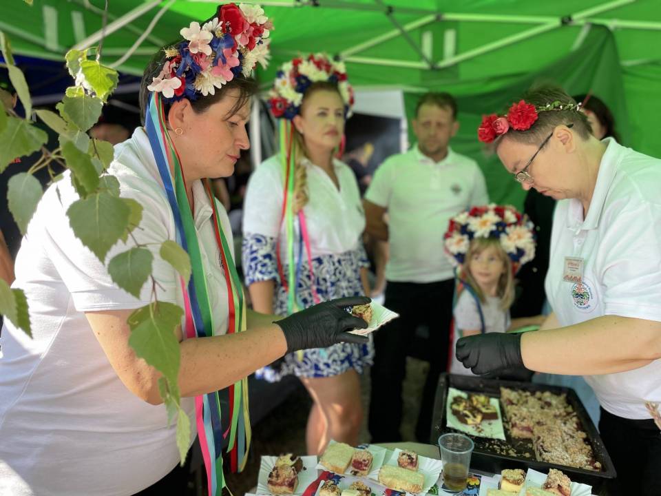 Jednak dożynki to nie tylko piękne tradycje, ale i doskonała okazja do świętowania w bardziej nieformalnej atmosferze. Na gości czekało aż 17 stoisk z lokalnymi przysmakami, przygotowanymi przez koła gospodyń wiejskich. Aromaty domowych ciast, regionalnych potraw i rozmaitych przekąsek przyciągały tłumy. Swoje kulinarne umiejętności zaprezentowały m.in. panie z KGW w Oleśniku, Porębach, Bukowej, Dobrzelowie, Kałdunach, Janowie, Korczewie, Wólce Łękawskiej czy Zdzieszulicach Dolnych. Stoły uginały się od smakowitości, a każdy mógł znaleźć coś dla siebie.