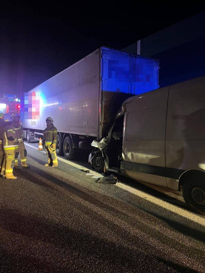 Ze wstępnych ustaleń wynika, że doszło do zderzenia samochodu dostawczego z pojazdem ciężarowym. Siła uderzenia była na tyle duża, że kierowca auta dostawczego został uwięziony w rozbitym pojeździe.