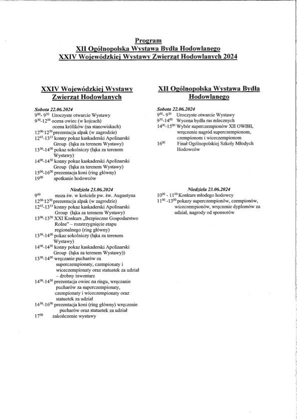 Na te dni zaplanowano: Ogólnopolską Wystawa Bydła Hodowlanego oraz Wojewódzką Wystawę Zwierząt Hodowlanych. Wystawy hodowlane uzupełnią: Targi Rolne "W sercu Polski".