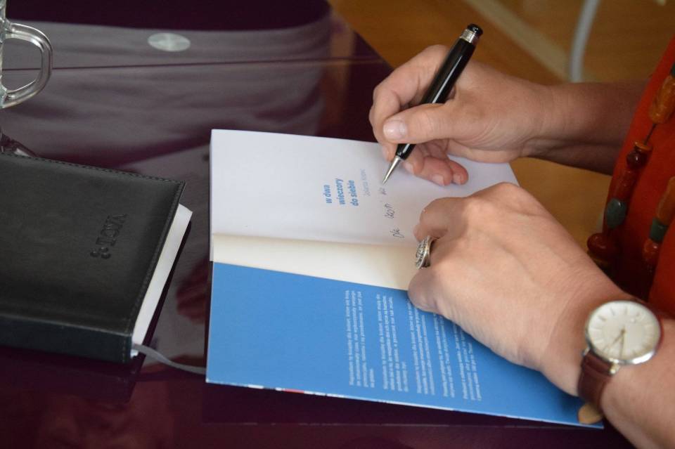 - W lutym zadebiutowała w roli pisarki. Jej pierwsza książka "W dwa wieczory do siebie" to poradnik, choć nie ma w nim dobrych rad, ćwiczeń, naukowych wywodów, ani moralizowania. Są za to pytania, rozmowy, żart i dużo autoironii, dzięki czemu książkę czyta się szybko, bez poczucia przymusu przyjęcia określonych zachowań. Czytelnicy biblioteki mieli możliwość zapoznać się z książką Jolanty Kopeć, wziąć udział w dyskusji oraz zakupić pozycję z autografem pisarki - relacjonują pracownicy wolborskiej biblioteki.