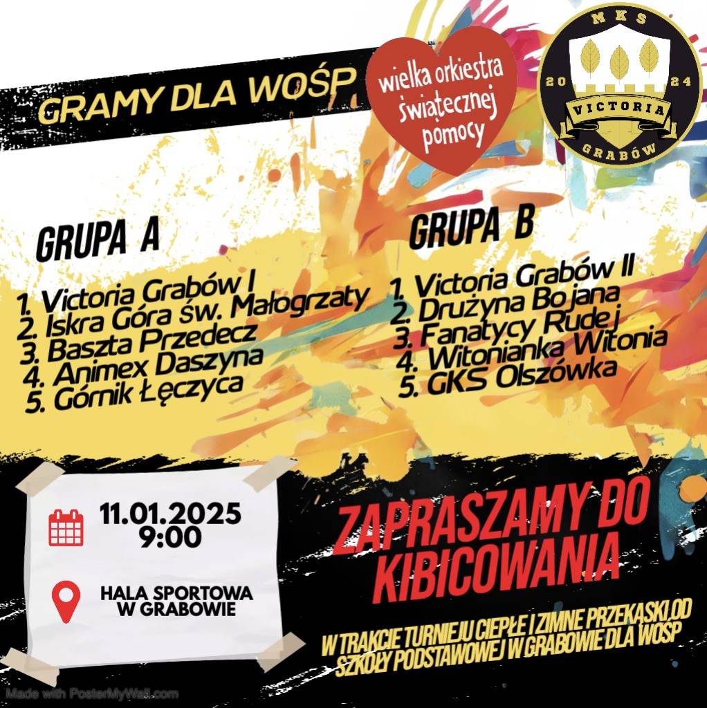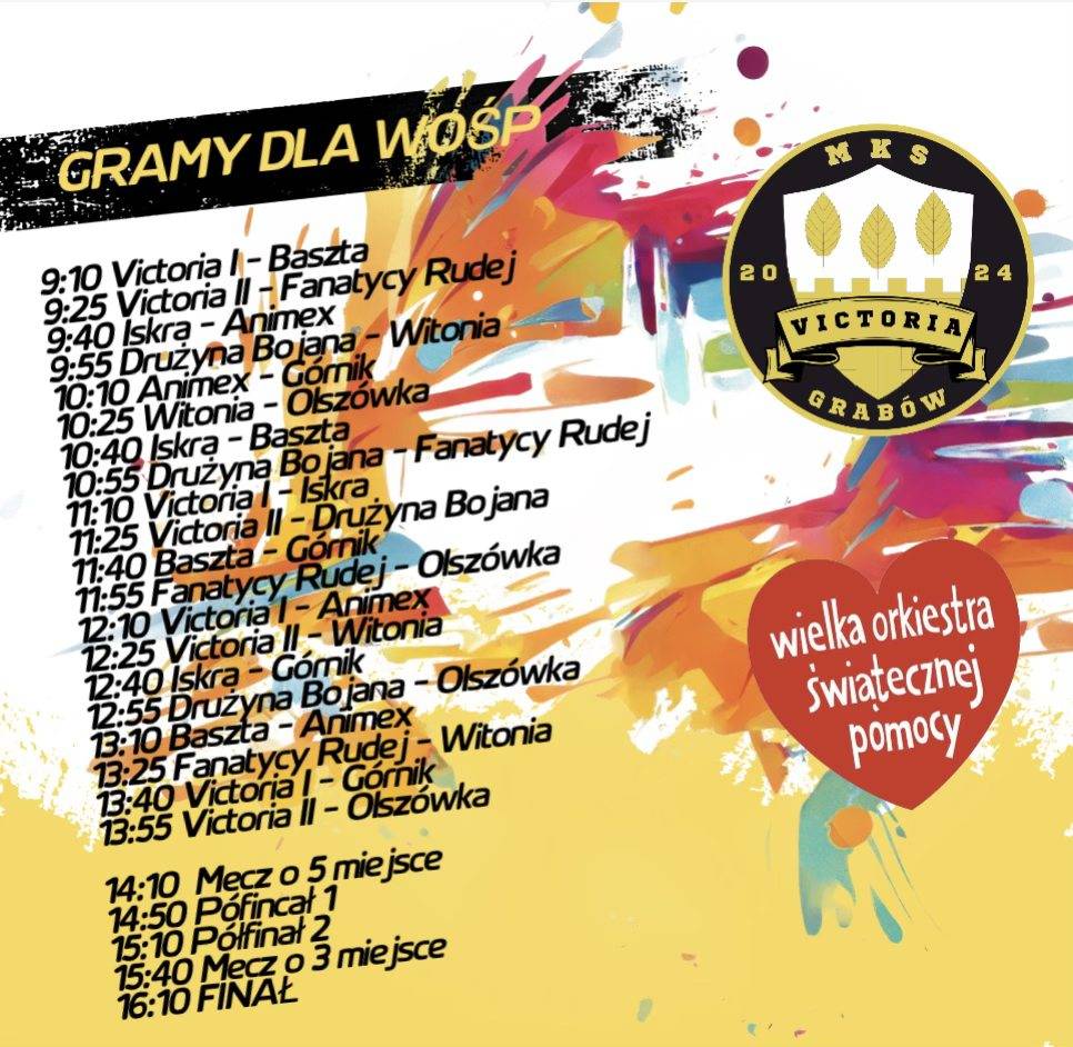 W sobotę (11 stycznia) w hali sportowej przy Szkole Podstawowej w Grabowie odbędzie się turniej piłki nożnej, z którego zysk zostanie przeznaczony na Wielką Orkiestrę Świątecznej Pomocy.