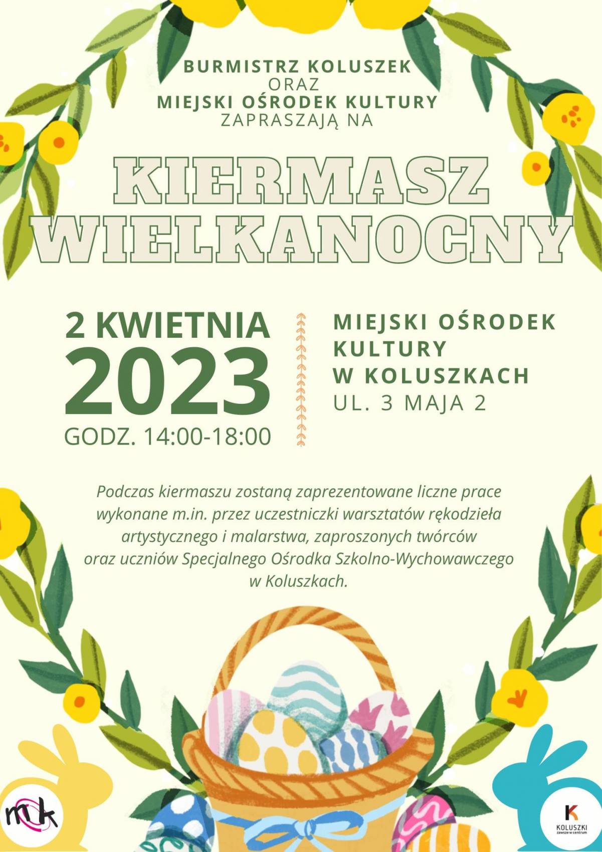 Burmistrz Koluszek i Miejski Ośrodek Kultury w Koluszkach zapraszają na tegoroczny Kiermasz Wielkanocny.