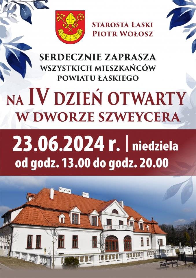 Starosta Łaski Piotr Wołosz zaprasza wszystkich mieszkańców powiatu łaskiego na IV Dzień Otwarty w Dworze Szweycera.
