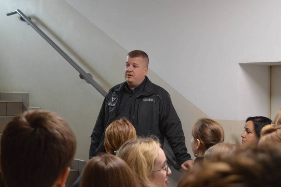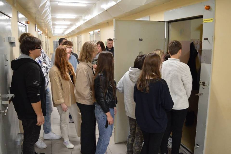 Uczniów po areszcie oprowadzał ich mł.chor. Mateusz Bielaczyc, młodszy psycholog działu penitencjarnego. O swojej pracy opowiadali także funkcjonariusze innych działów.