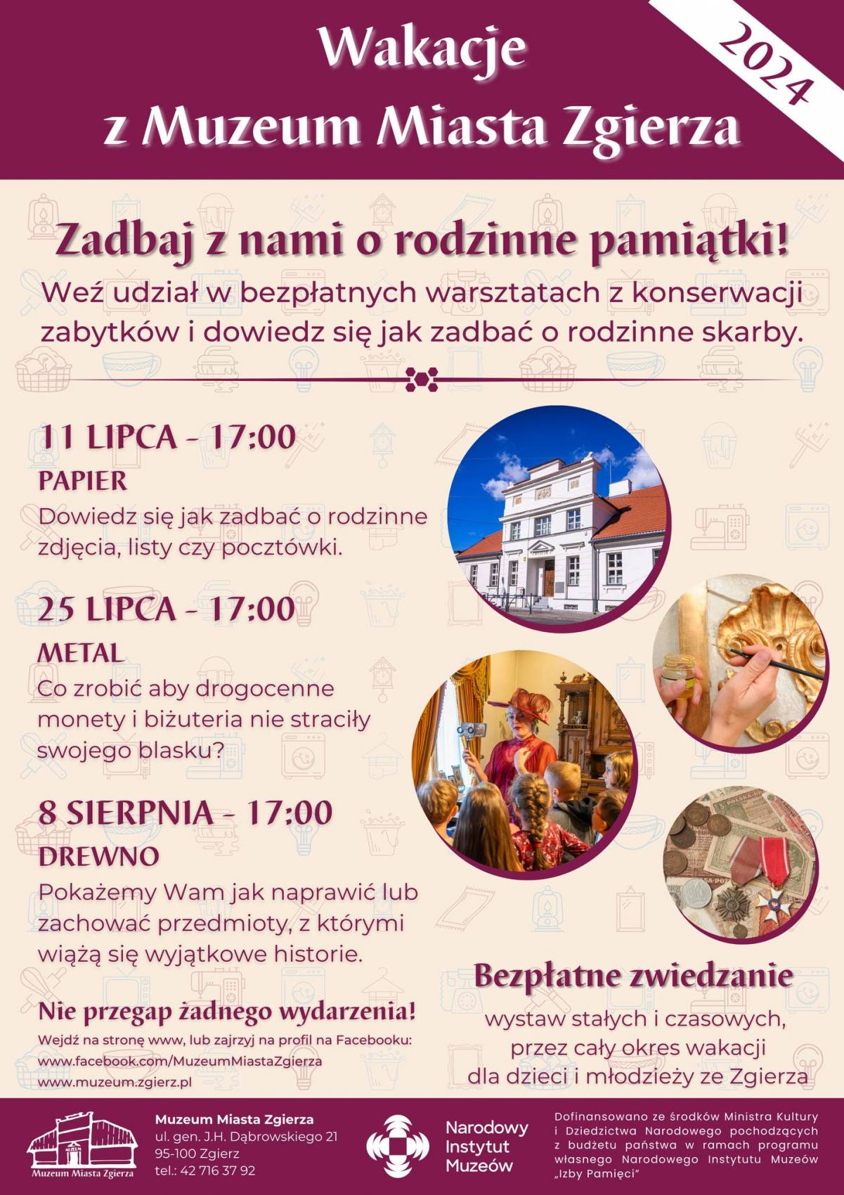 - Weź udział w bezpłatnych warsztatach z konserwacji zabytków i dowiedz się, jak zadbać o rodzinne skarby. Każde zajęcia to okazja, aby nauczyć się, jak chronić i pielęgnować cenne przedmioty, które mają dla Was szczególne znaczenie - mówią organizatorzy. - Przy okazji przypominamy o trwające zbiórce pamiątek do Izby Pamięci Zgierzan!