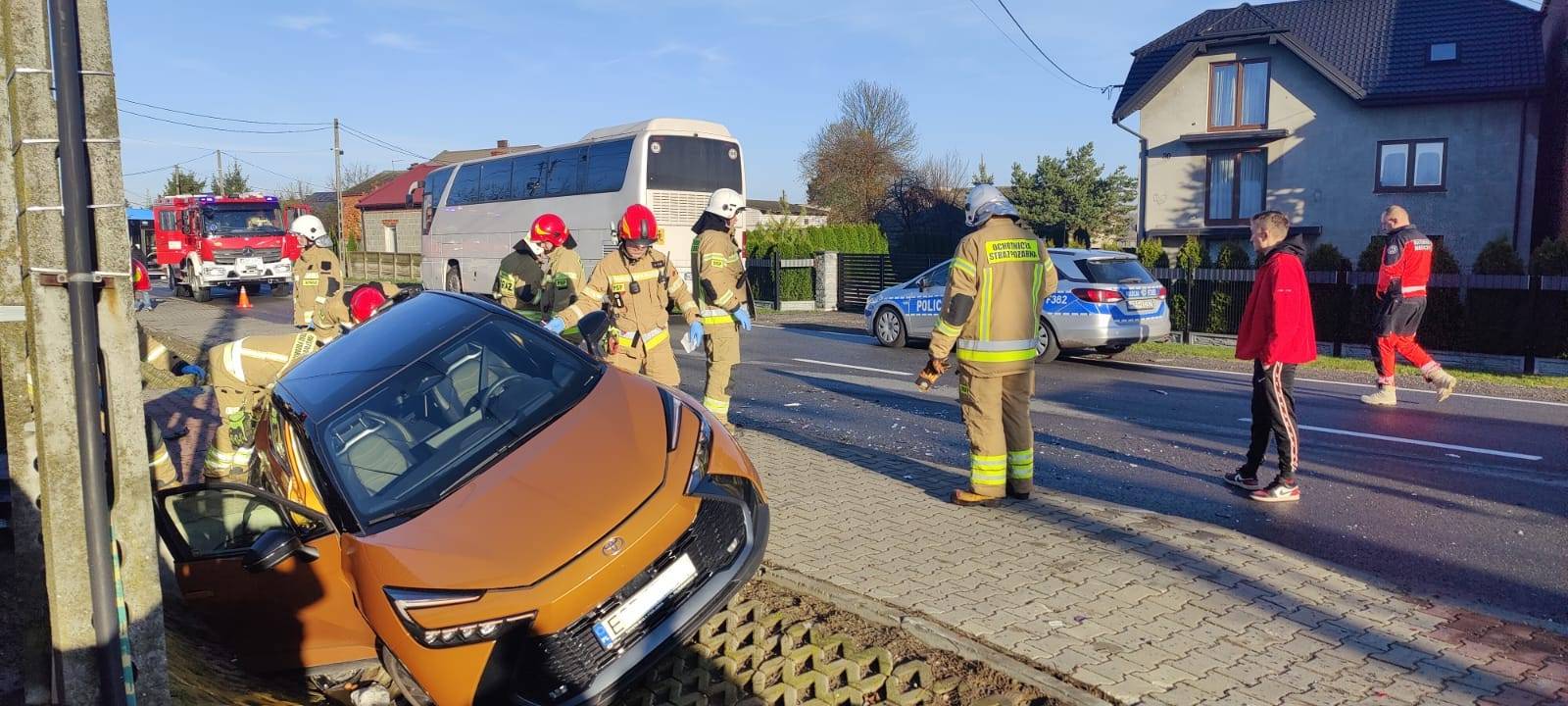 Zdarzenie miało miejsce po godz. 8. Według wstępnych ustaleń, osobowa toyota zderzyła się z autokarem, którym podróżowało 47 dzieci oraz trzech opiekunów. Na szczęście żadne z dzieci ani opiekunów nie odniosło obrażeń.