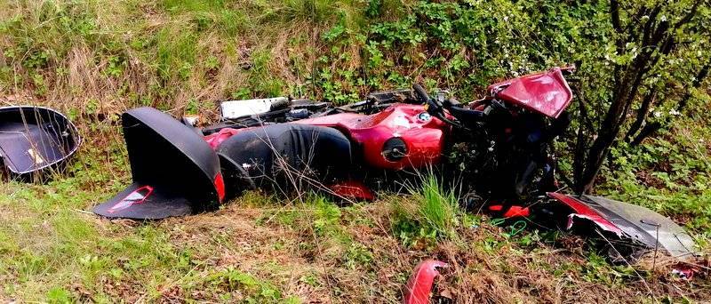 W piątkowe przedpołudnie, 30 maja 2021 roku, dyżurny rawskiej komendy odebrał zgłoszenie o wypadku na drodze relacji Sadkowice-Biała Rawska. Na miejsce natychmiast skierowani zostali policjanci. Funkcjonariusze, którzy pracowali na miejscu zdarzenia ustalili, że kierujący motocyklem bmw jechał w kierunku Białej Rawskiej i z niewyjaśnionych przyczyn zjechał na przeciwległy pas ruchu, zderzył się z mercedesem typu bus, który jechał w przeciwnym kierunku. Następnie motor przewrócił się na jezdnię i wpadł do rowu. 54-letni kierowca mercedesa był trzeźwy. Kierujący bmw nie posiadał uprawnień do kierowania motocyklem i po zbadaniu stanu trzeźwości okazało się, że ma 1,5 promila alkoholu w organizmie. Z uwagi na obrażenia został przewieziony do szpitala. Policjanci zabezpieczali miejsce wypadku, a śledczy z technikiem wykonali oględziny.