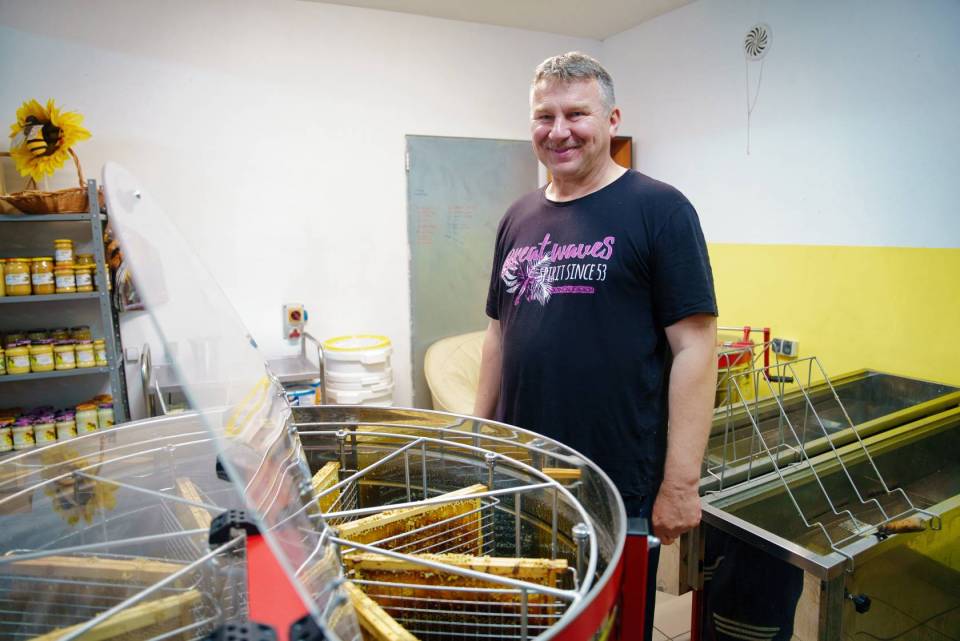 – Pszczoły to taka działalność po godzinach, w międzyczasie – żartuje, ale pszczoły traktuje bardzo poważnie. W ocenie lekarza weterynarii, pasieka Na Wzniesieniach Łódzkich jest jedną z lepiej utrzymanych. Pan Piotr bardzo dba o swoje rodziny, regularnie objeżdża ule i… rozmawia z pszczołami. – Tak, rozmawiam z psiulkami, cały czas, a najczęściej jak mnie żądlą – przyznaje ze śmiechem.