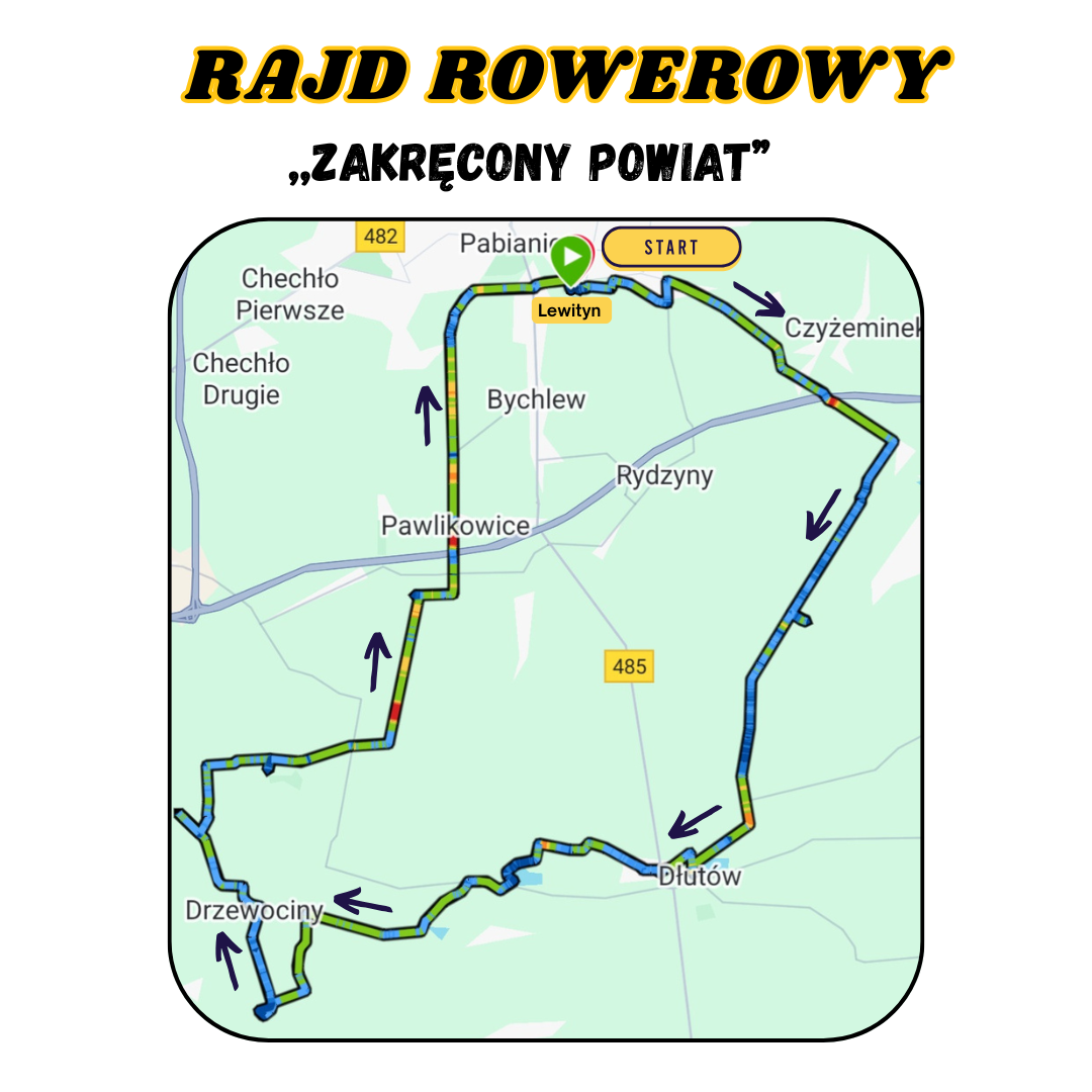Pierwsza edycja „Zakręconego Powiatu" zabierze uczestników do gminy Dłutów. Po drodze zaplanowano kilka przystanków przy interesujących lokalizacjach, gdzie będzie można nie tylko odpocząć, ale również usłyszeć krótkie opowieści o ich historii i znaczeniu dla regionu.