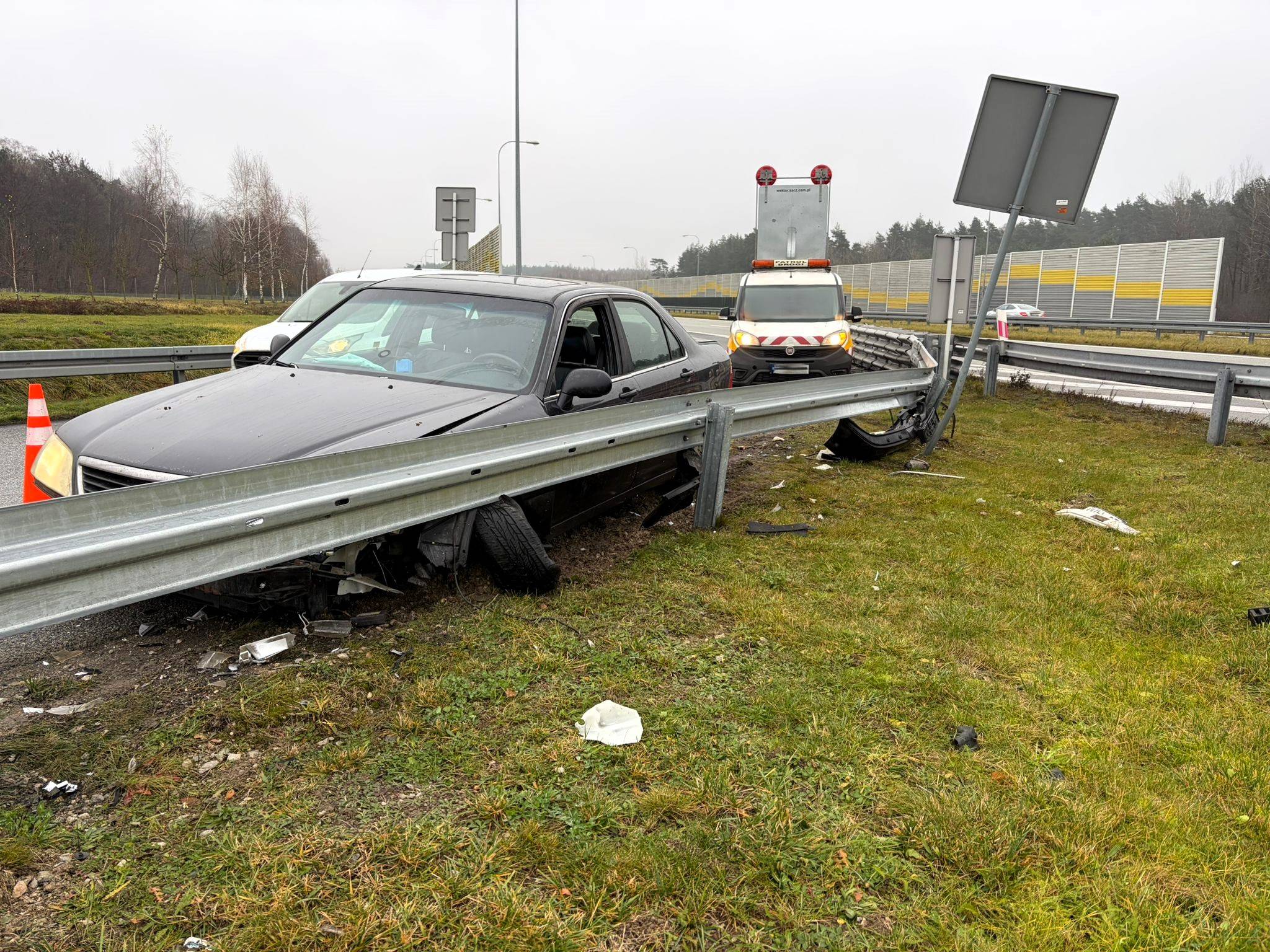 W piątek, 5 grudnia, około godziny 10.50, na drodze ekspresowej S8 w kierunku Wrocławia doszło do zdarzenia drogowego. Podczas zjazdu na MOP Sięganów kierowca stracił panowanie nad pojazdem i uderzył w barierę energochłonną.