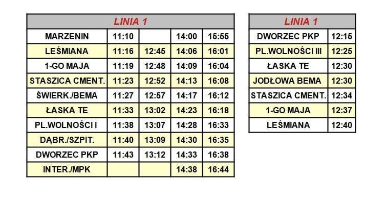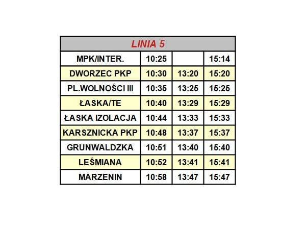 Linie nr 5 oraz nr 1 będą miały łącznie cztery dodatkowe kursy w obu kierunkach. Pierwszy po godz. 10, a ostatni po godz. 16.