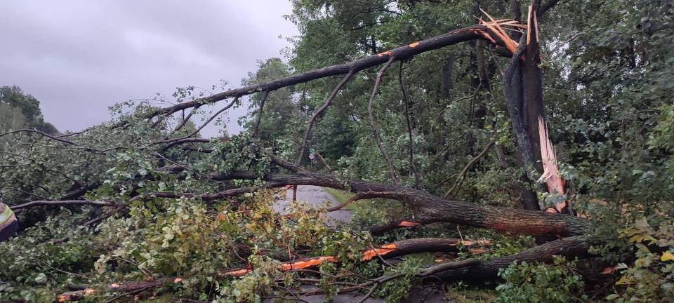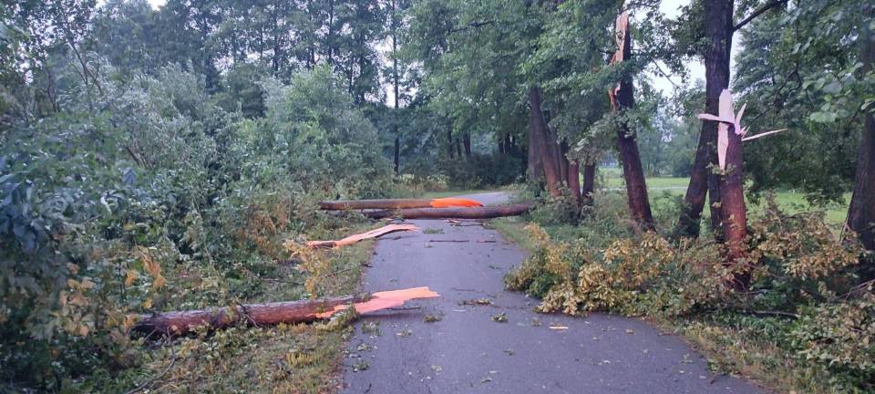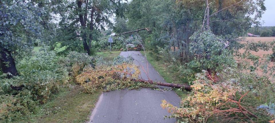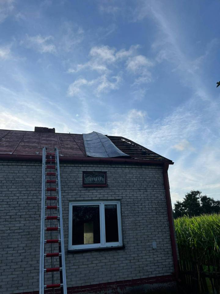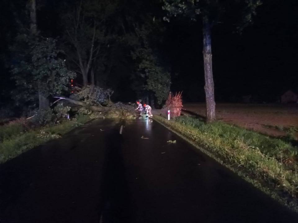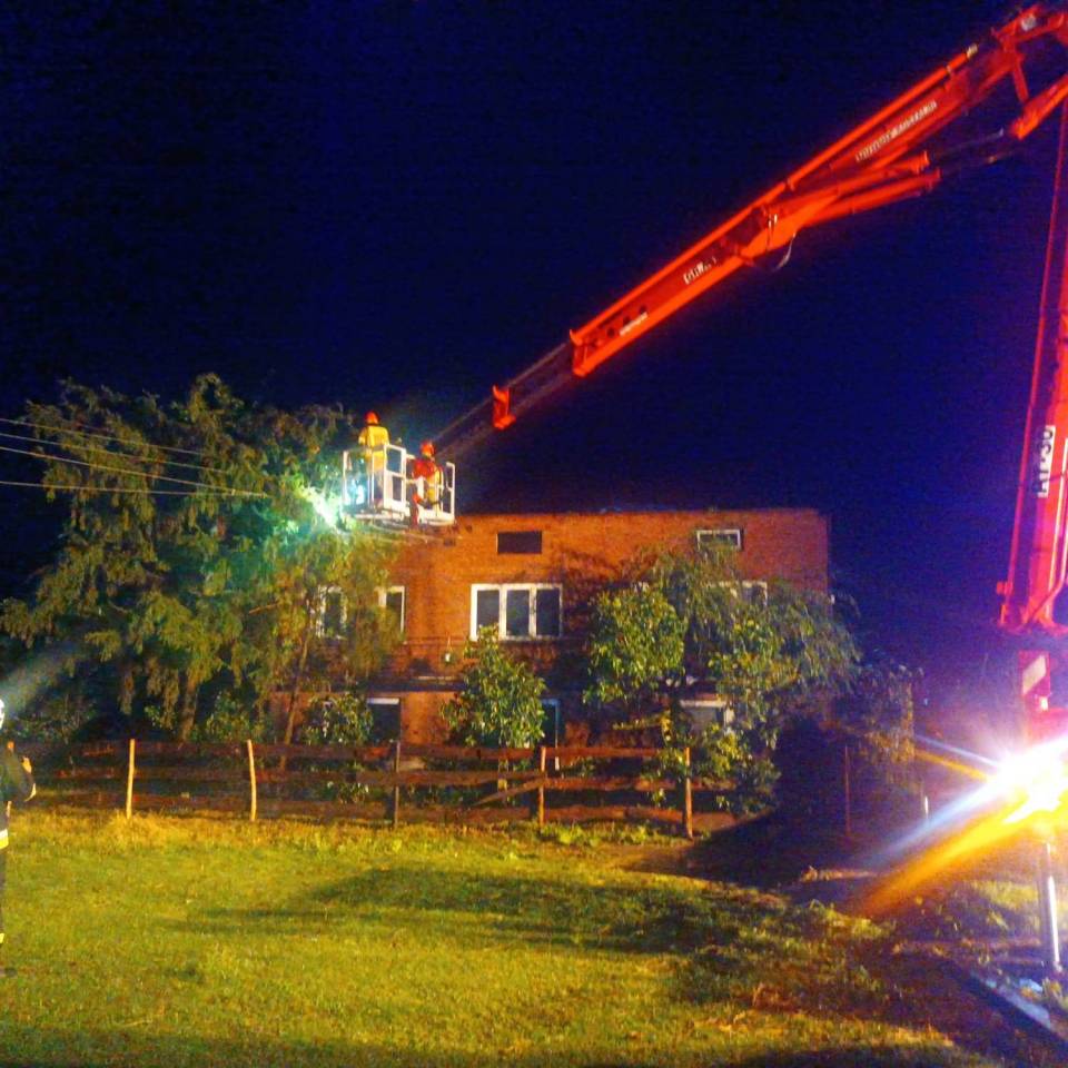 - O godzinie 23.30 do stanowiska kierowania Komendanta Powiatowego Państwowej Straży Pożarnej w Poddębicach wpłynęły pierwsze zgłoszenia związane z przechodzącymi przez nasz powiat burzami, silnym wiatrem i ulewnym deszczem - informuje bryg. Radosław Ogrodowczyk. - Do chwili obecnej odnotowaliśmy 50 interwencji, w tym jeden całkowicie zerwany dach z budynku mieszkalnego w miejscowości Chodaki, dwa uszkodzone dachy budynków mieszkalnych w miejscowościach Budy Jeżewskie i Anusin, pięć uszkodzonych dachów budynków gospodarczych, dwa złamane słupy wysokiego napięcia, trzydzieści sześć interwencji związanymi z wywrotami drzew, nadłamanymi konarami drzew i uszkodzonymi liniami energetycznymi, a także cztery zdarzenia z wypompowywaniem wody z budynków.