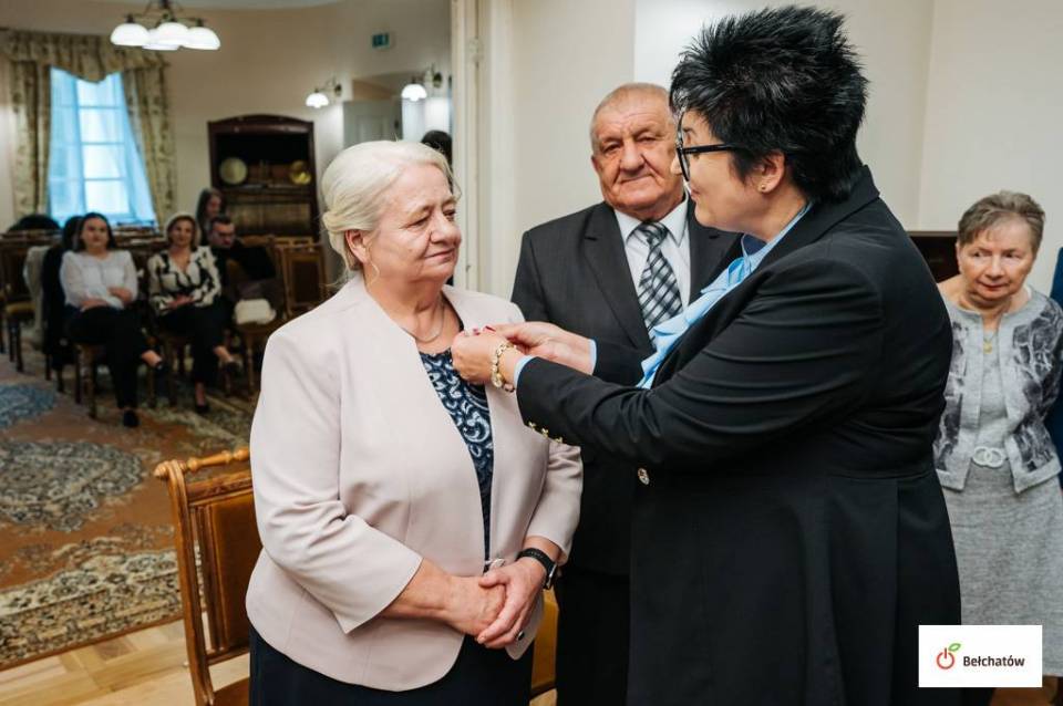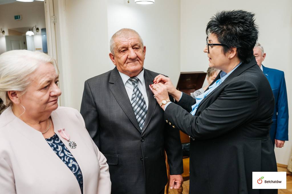 Okolicznościowe medale za długoletnie pożycie, nadane przez Prezydenta Rzeczypospolitej Polskiej, wręczyła jubilatom wiceprezydent Bełchatowa Agnieszka Ludwiczak-Maszewska.