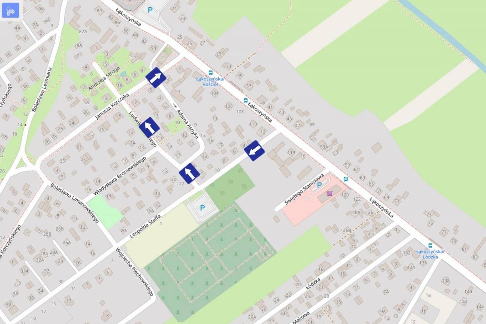 ruch kołowy na ul. Staffa odbywał się będzie jednokierunkowo od ul. Łąkoszyńskiej w stronę skrzyżowania z ul. Solskiego i od ul. Solskiego w kierunku ul. Korczaka również w jednym kierunku. Zmiany w organizacji ruchu w rejonie Łąkoszyna obowiązywać będą do 2 listopada do godz. 24:00.