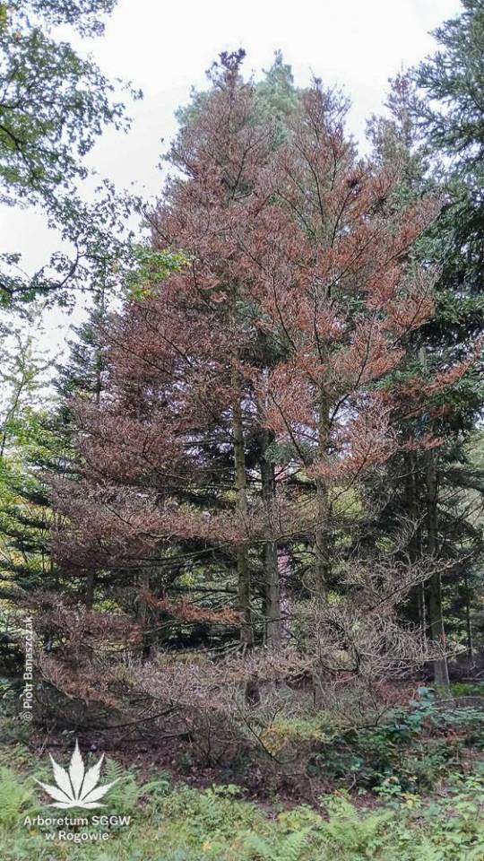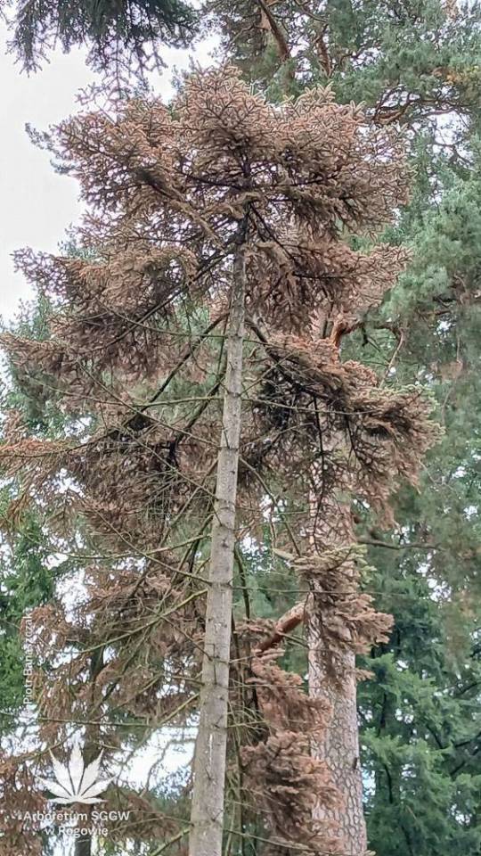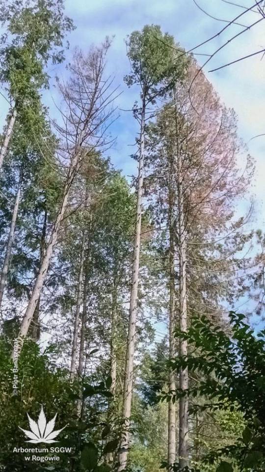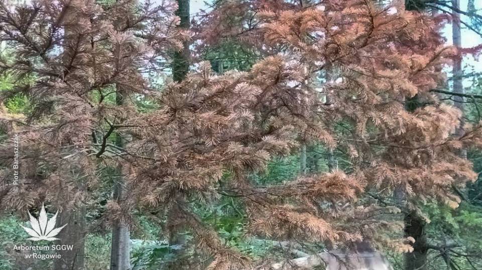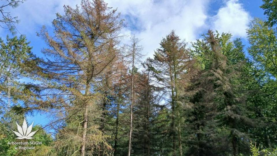 - Dzisiaj nie będzie kwiatków. W wyniku długotrwałych okresów suszy, szczególnie letnich, drzewa iglaste z rodziny sosnowatych zamierają u nas w ogrodzie w tempie niespotykanym nigdy w historii. Dotyczy to przede wszystkim świerków, także choin, jodeł, niektórych sosen i modrzewi, a nawet ostatnio daglezji, które nigdy wcześniej nie zamierały. Sfotografowane tutaj przykładowe drzewa rosną na powierzchniach doświadczalnych i usychają po kilka - kilkanaście drzew w ciągu sezonu, a niektóre nawet po kilkadziesiąt. Wyraźnie świadczy to o ich nieprzystosowaniu do upałów i susz. Mamy z tego tytułu mnóstwo dodatkowej roboty z ich usuwaniem, ale za to później będzie trochę miejsca na nowe kolekcje. Nie ma tego złego..." - napisali w mediach społecznościowych pracownicy rogowskiego Arboretum.