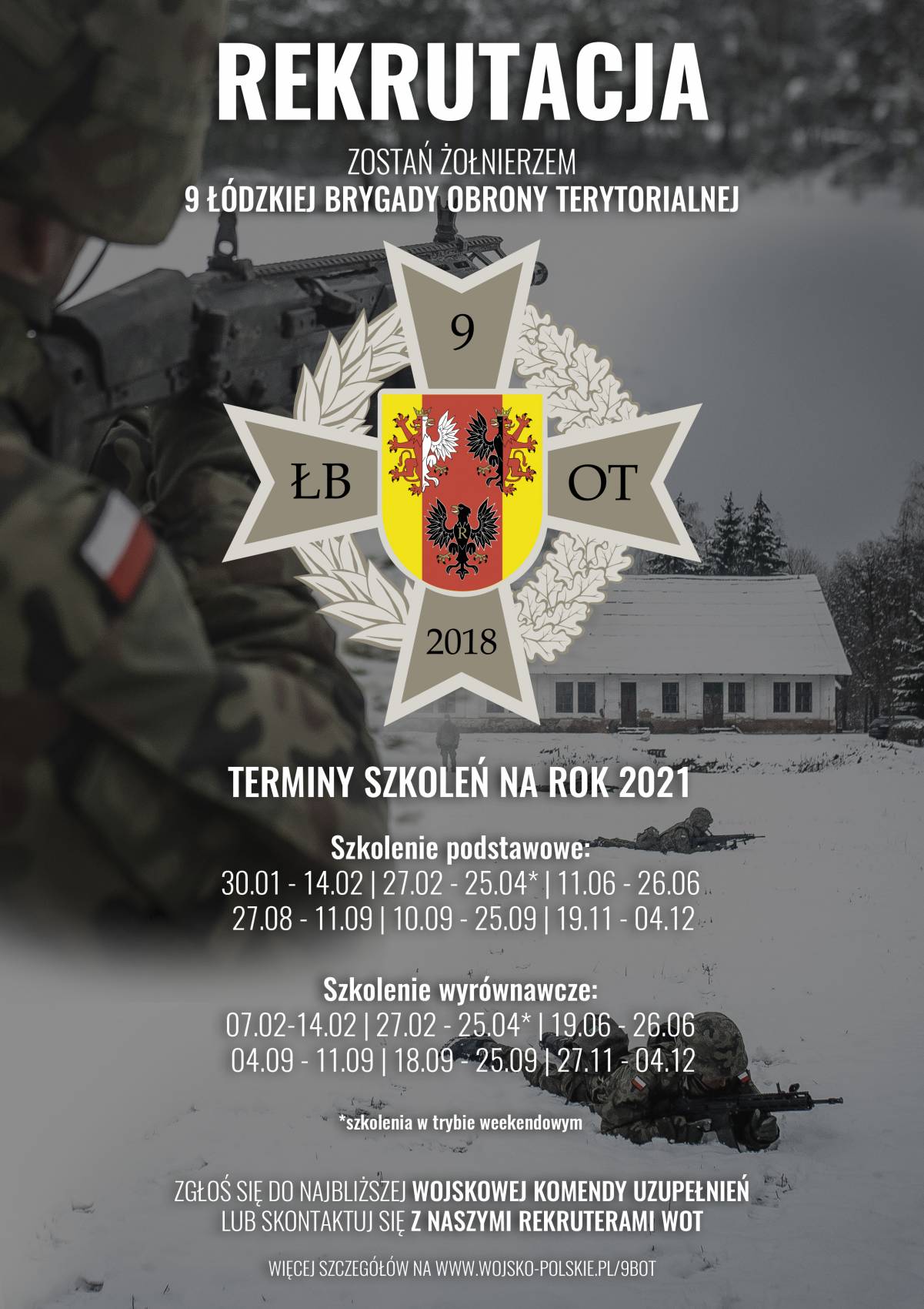 W 9. Łódzkiej Brygadzie Obrony Terytorialnej służy blisko 1200 żołnierzy. Na 2021 rok zaplanowanych jest po 6 szkoleń podstawowych i wyrównawczych dla nowych ochotników.